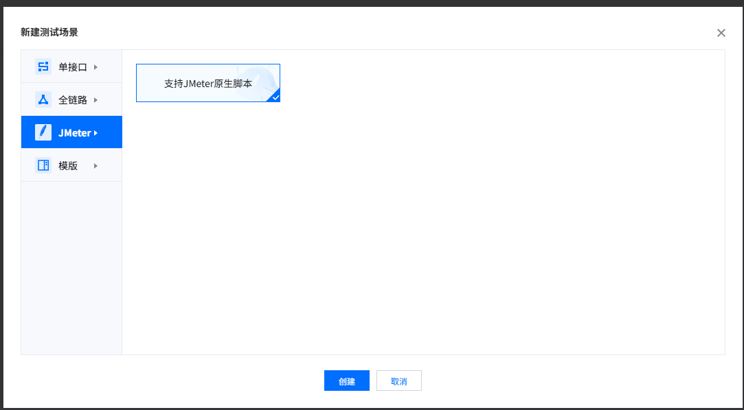 在新建测试场景中,上传JMX脚本,完成不同程度的语速、文本长度、业务并发量等控制输入。优测平台支持JMeter模式,可以提供与原生JMeter一致的压测体验。